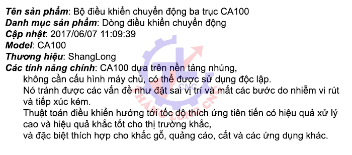 Kích thước Sản phẩm CA100