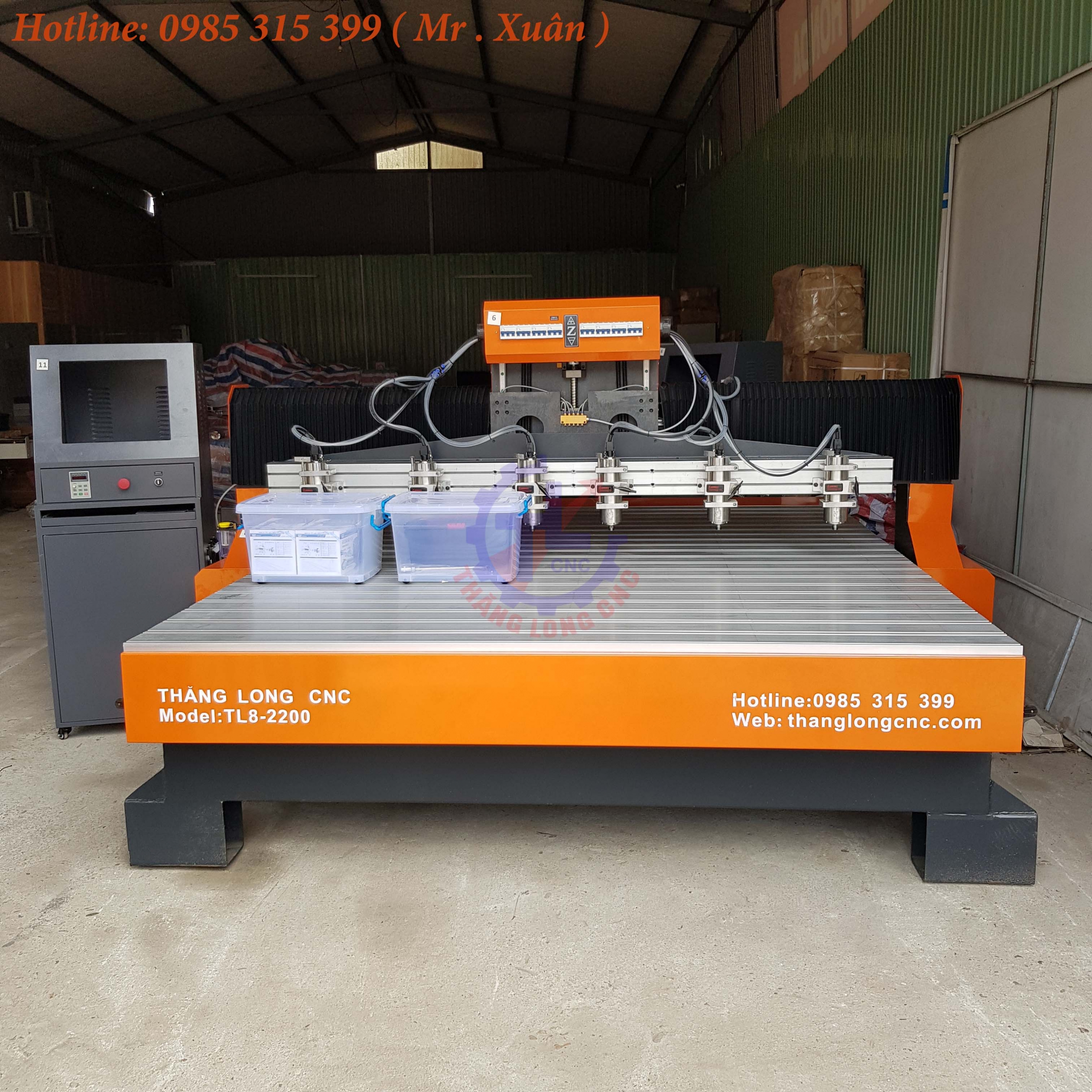 Máy đục gỗ vi tính 6 đầu khắc, khổ làm việc 2225mm x 2500mm là dòng máy cnc khắc gỗ phổ thông.