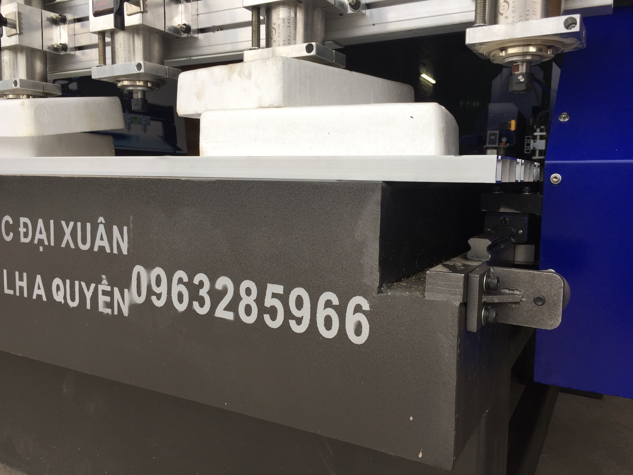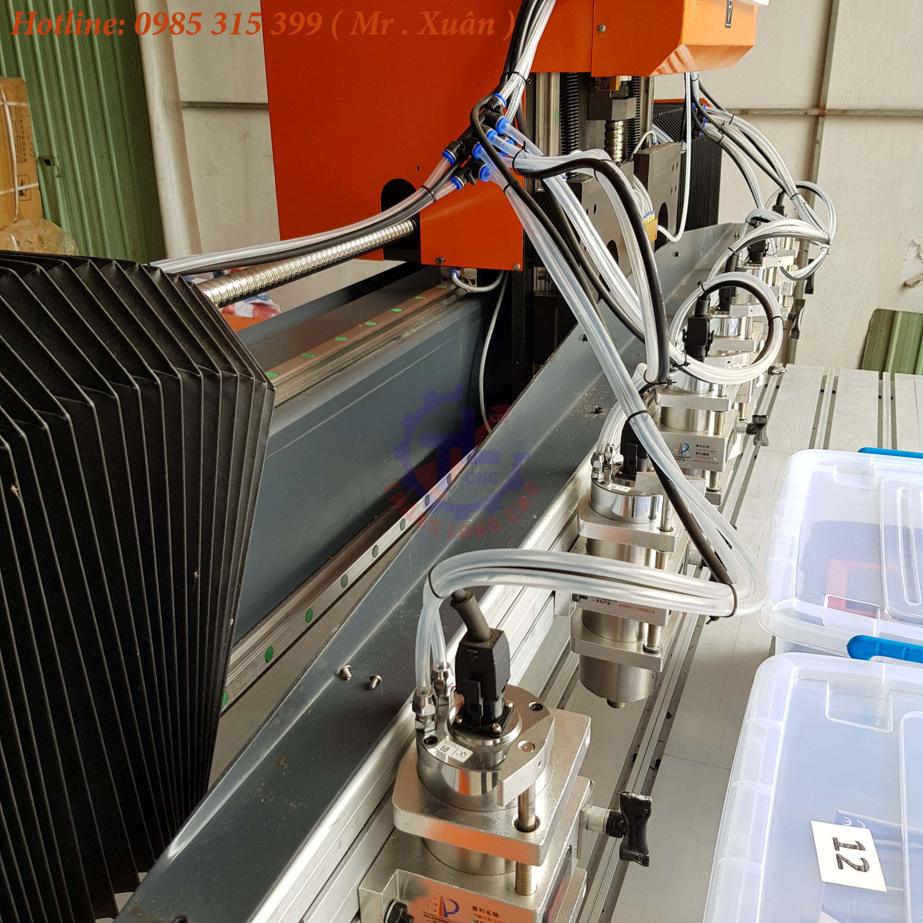 Khổ làm viêc của máy: rộng 2225mm x dài 2500mm x 250mm ( 6 đầu đục )