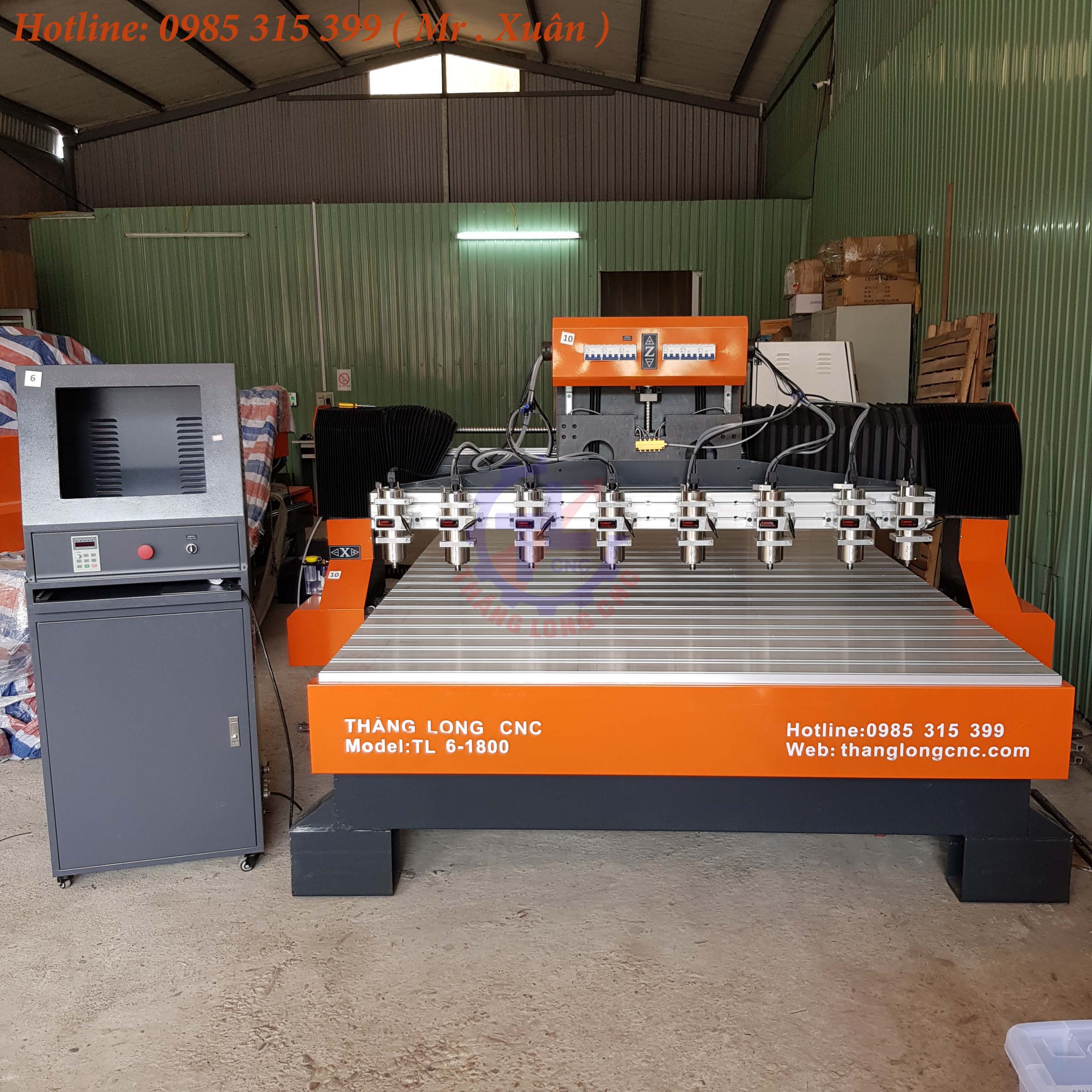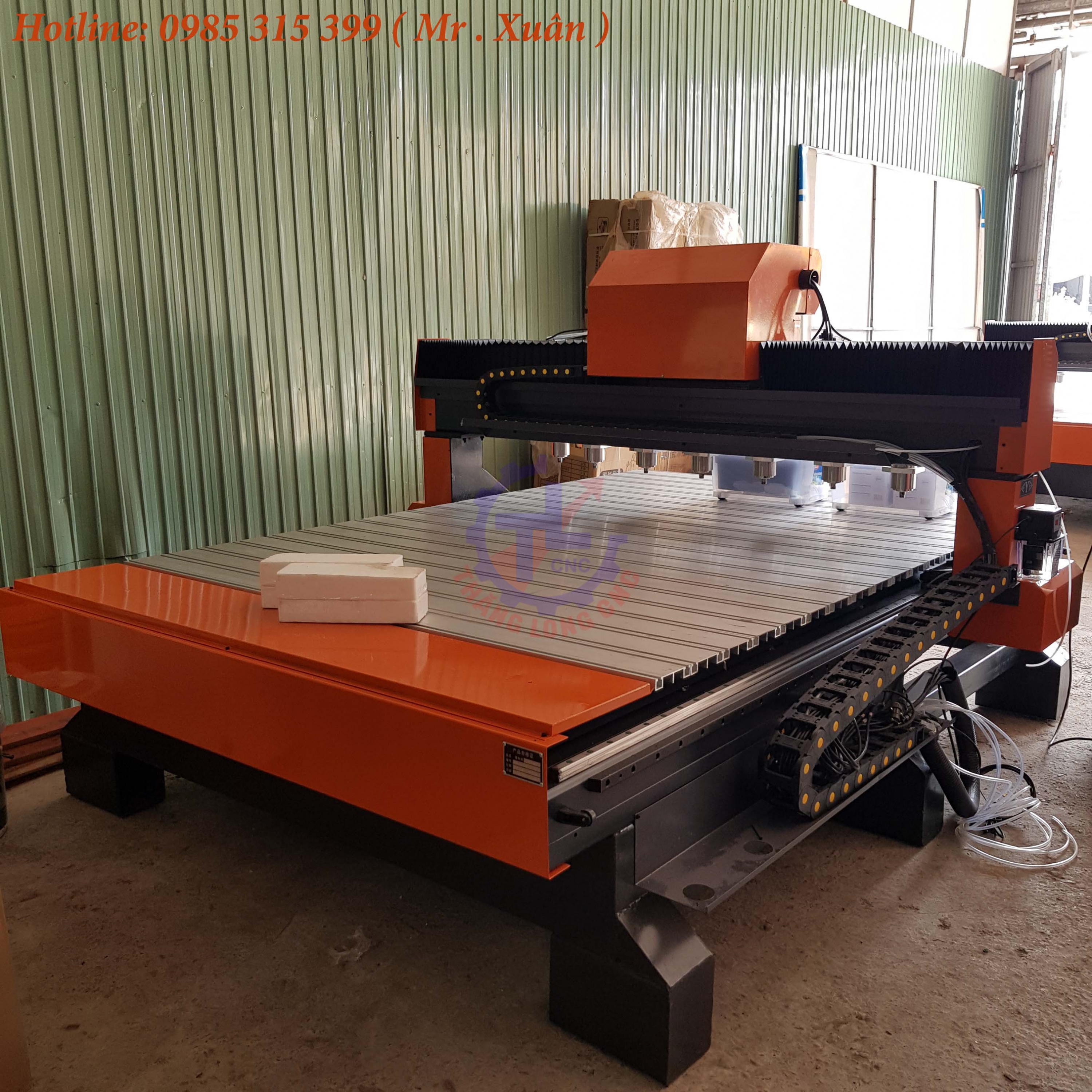 Máy đục gỗ vi tính 8 đầu khắc, khổ làm việc 1m8 x 2m5 là dòng máy cnc khắc gỗ phổ thông.